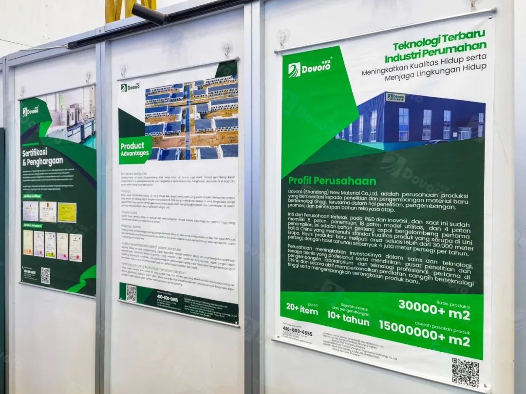 多富瑞印度尼西亚建材博览会上的亮相,展示了波形沥青瓦的卓越品质,与当地需求的契合,受到了广大业内人士和观众的一致好评。“科技改变居住方式,领航轻质绿色建筑”多富瑞将继续不断创新,致力于为建筑业提供更多优质、可靠的屋顶解决方案。